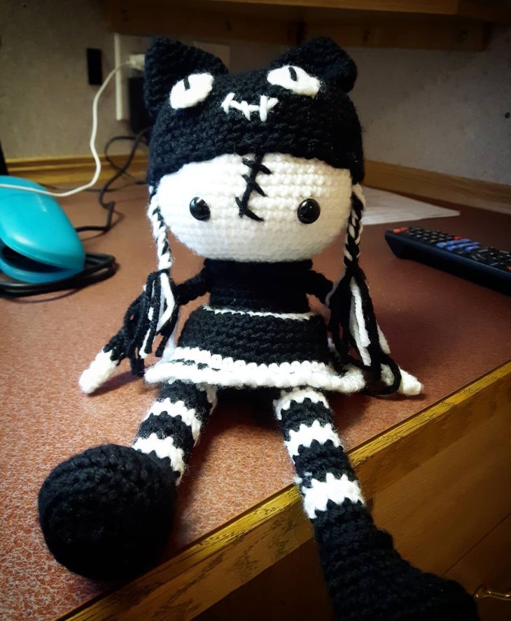 But I think I may have found my calling when I came across a patten for a spooky little Nightmare Before Christmas type doll. It had more pieces than anything I’d done before, but the stitches were basic so I bought the pattern and gave it a go.